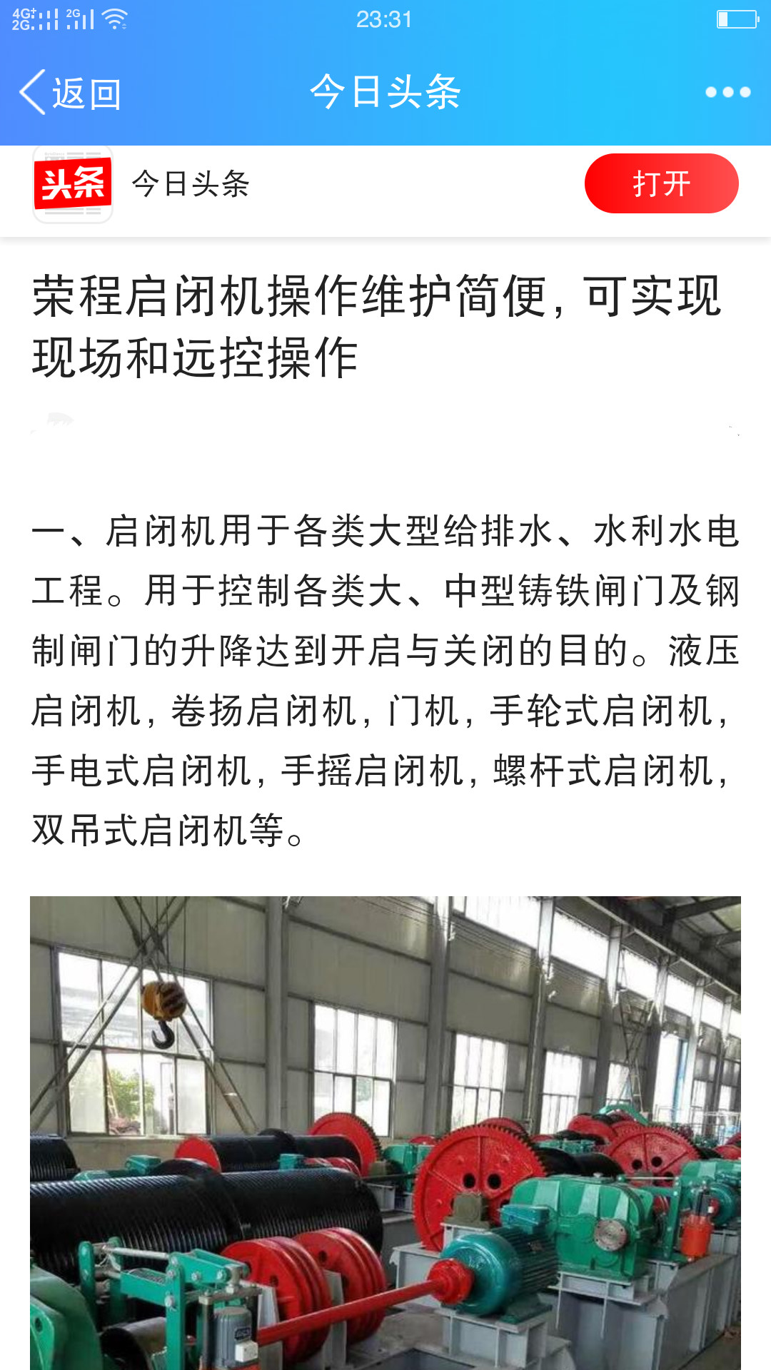榮程水利卷揚(yáng)啟閉機(jī)上今日頭條啦,榮程水利生產(chǎn)的水利設(shè)備質(zhì)量好價格有被客戶認(rèn)可,卷揚(yáng)啟閉機(jī)又單調(diào)點(diǎn)和雙吊點(diǎn)兩種。卷揚(yáng)啟閉機(jī)以分為QPQ型普通卷揚(yáng)啟閉機(jī)、QPK型快速卷揚(yáng)啟閉機(jī)、QPG型高揚(yáng)程卷揚(yáng)啟閉機(jī)、QPT型臺車式卷揚(yáng)啟閉機(jī),QPM型門式卷揚(yáng)啟閉機(jī),QH型弧門卷揚(yáng)啟閉機(jī)。卷揚(yáng)啟閉機(jī)又分為:平門卷揚(yáng)式啟閉機(jī);弧形門卷揚(yáng)式啟閉機(jī);雙吊點(diǎn)卷揚(yáng)式啟閉機(jī);快速卷揚(yáng)式啟閉機(jī);移動式臺車啟閉機(jī);雙吊點(diǎn)卷揚(yáng)式啟閉機(jī)分為:集中驅(qū)動和單獨(dú)驅(qū)動兩種。